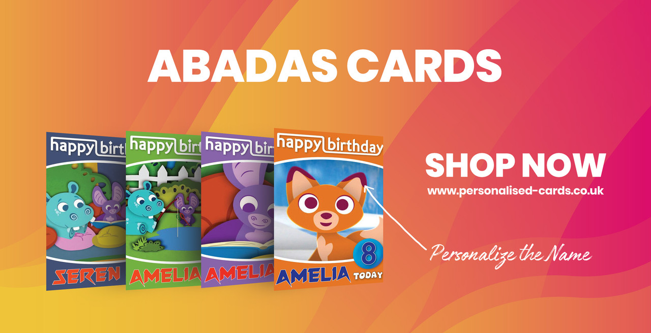 Abadas 7 Kidshows Birthday Card (SA) Here at personalised-cards.co.uk all our cards are printed on a state of the art press and professionally machine scored to the highest standard. All of our cards are printed onto 350gsm silk card. The thickest you...